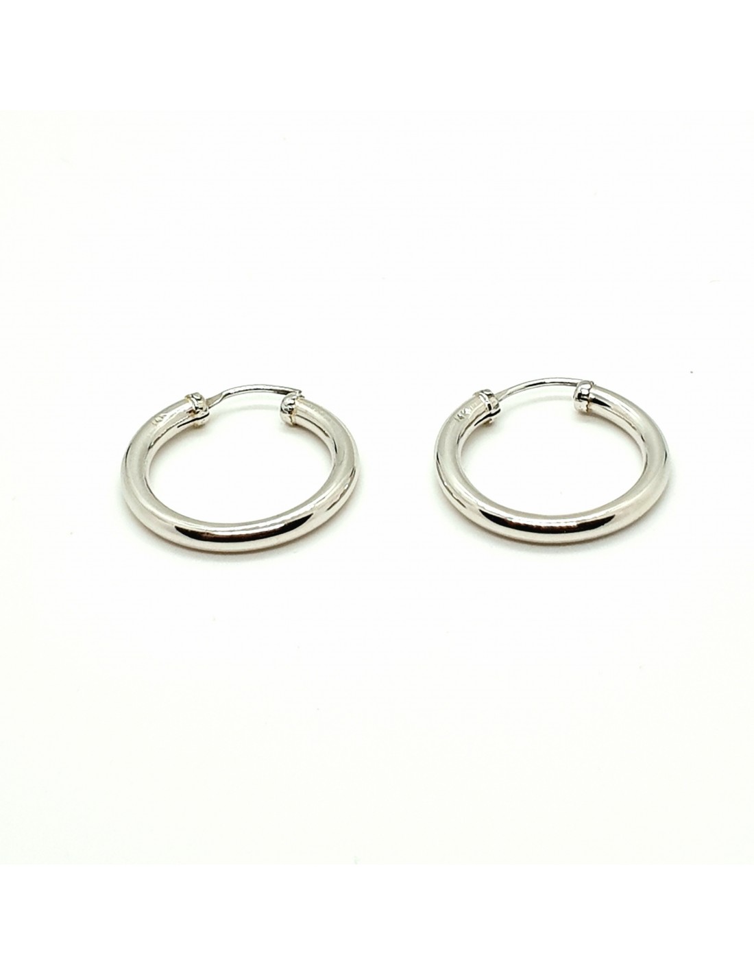 Κοσμήματα ΒαρουχάκηΓυναικεία σκουλαρίκια κρίκοι σε λευκόχρυσο 14 καρατίων με λουστρέ φινίρισμα.