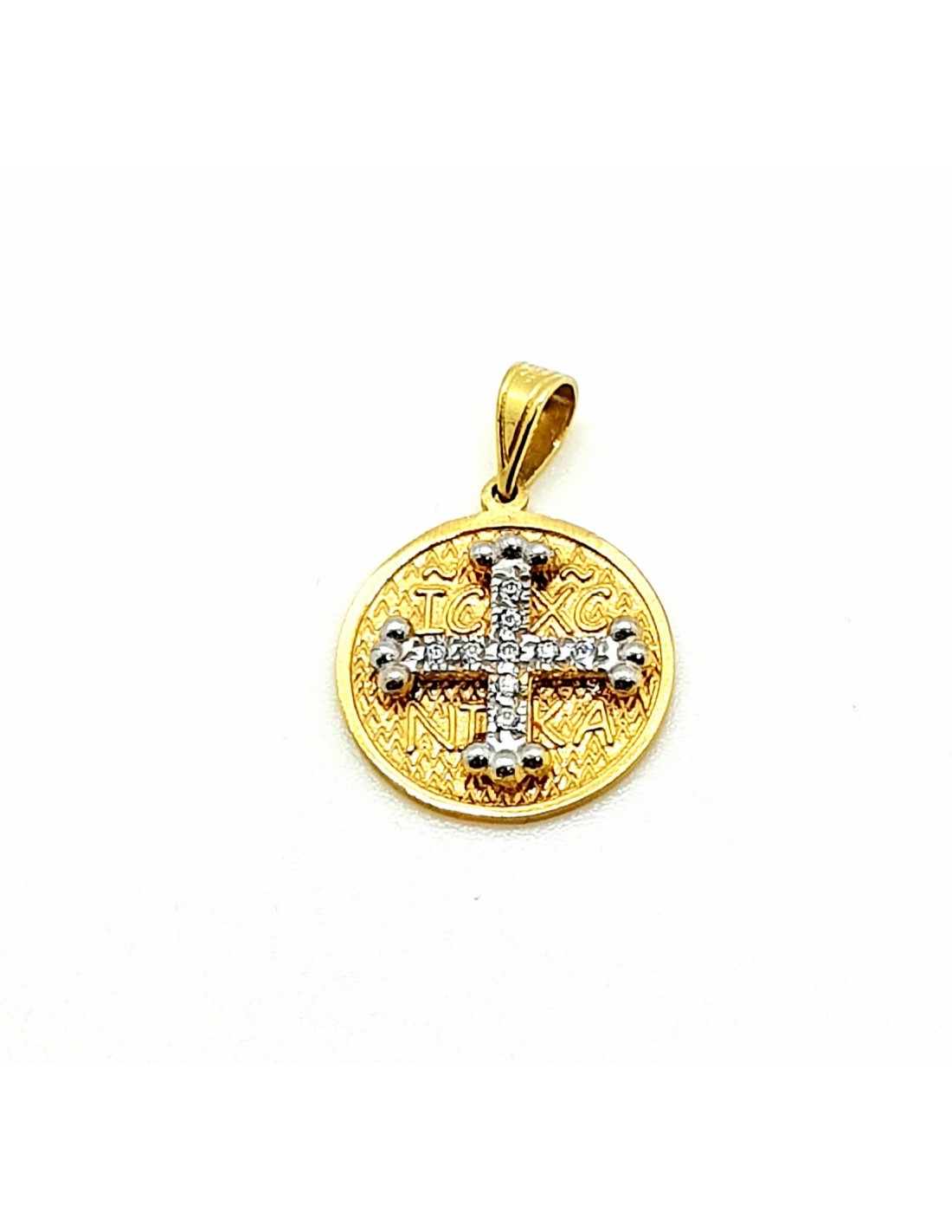 Κοσμήματα ΒαρουχάκηΚωνσταντινάτο διπλής όψης διακοσμημένο με ζιργκόν πέτρες κεντρικά και στην άλλη όψη με τους Αγιούς Κωνσταντίνου & Ελένης.
