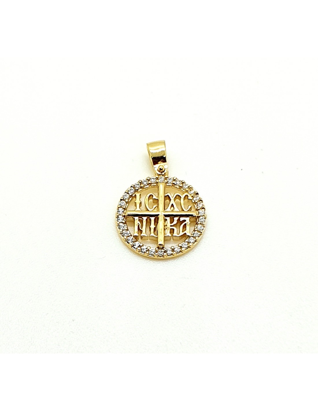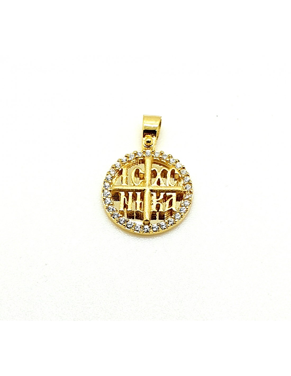 Κοσμήματα ΒαρουχάκηΜοντέρνο Κωνσταντινάτο σε χρυσό 14 καρατίων Ιησούς Χριστός Νικά (IC XC NIKA) με σατινέ φινίρισμα.