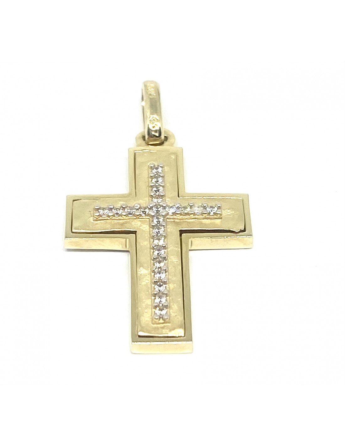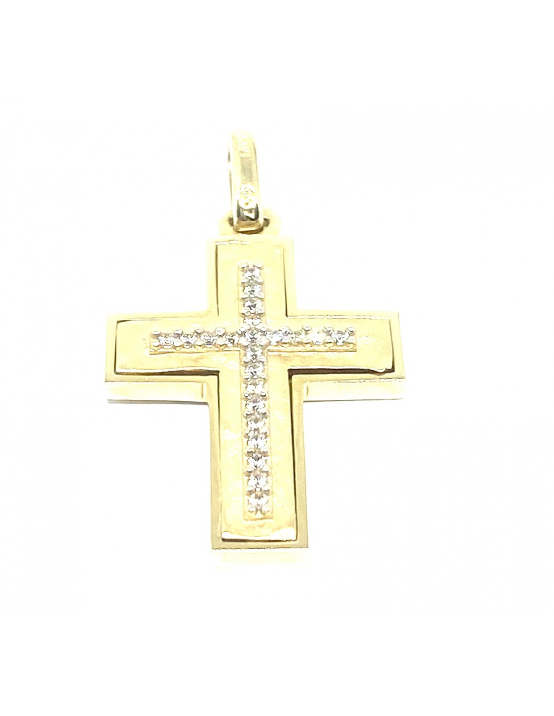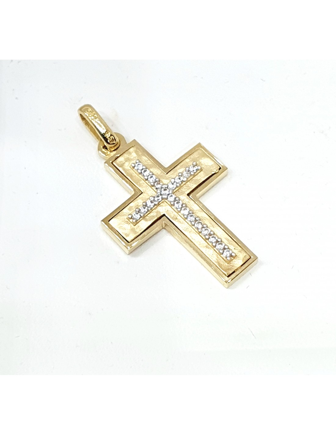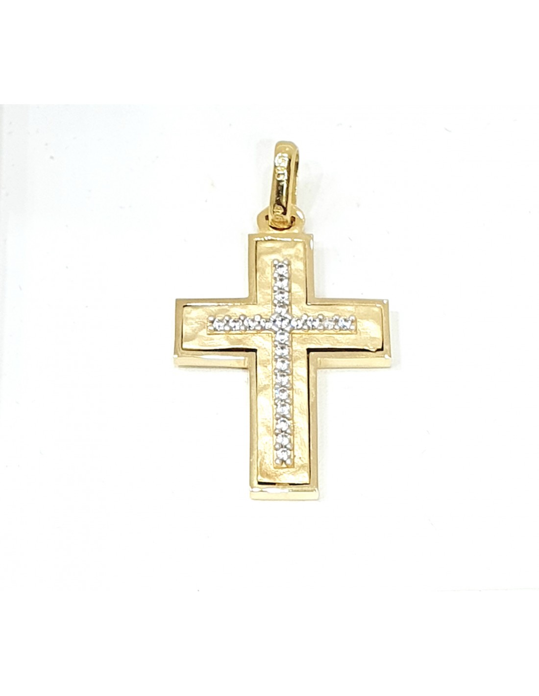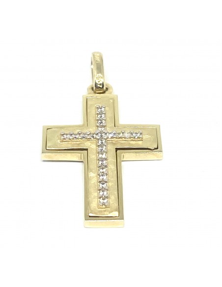 Μοντέρνος σταυρός κατασκευασμένος από 14 καράτια χρυσό 585 με σχέδιο σφυρίλατο ματ.