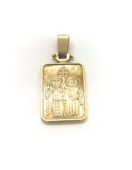 Κοσμήματα ΒαρουχάκηΤετράγωνο φυλαχτό διπλής όψης με τη Παναγία και τους αγίους Κωνσταντίνου και Ελένη από την άλλη όψη.