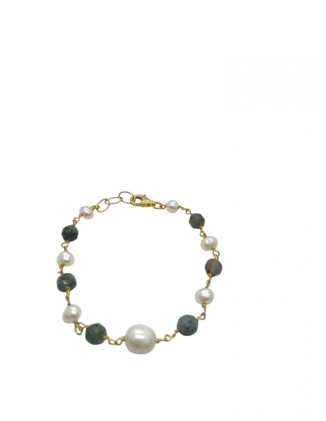 Κοσμήματα ΒαρουχάκηΒραχιόλι με πέτρες λαμπραδορίτη όπου λέγεται ότι ο λαμπραδορίτης προστατεύει και ενισχύει την αύρα..