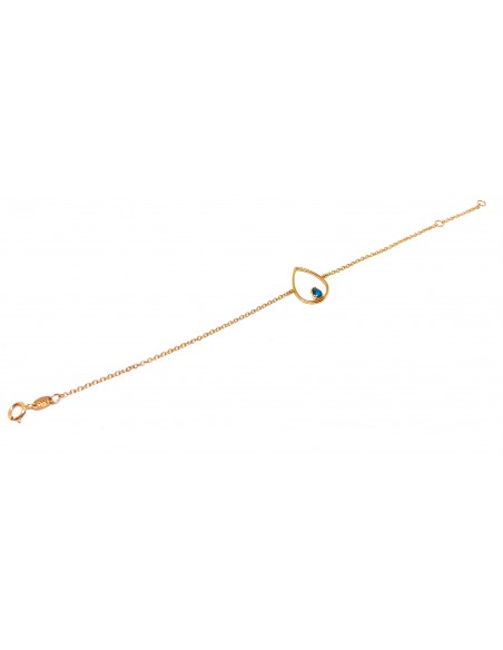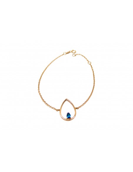Βραχιόλι κατασκευασμένο από χρυσό 14 καρατίων με διακοσμητικό σε σχήμα σταγόνας όπου στο κέντρο βρίσκεται μία μικρή μπλέ πέτρα σε κοπή δάκρυ προσδίδοντας μια διακριτική αλλά εκλεπτυσμένη λάμψη.