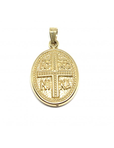 Αγιοκωνστάντινο από χρυσό 14 καρατίων "Ιησούς Χριστός Νικά''