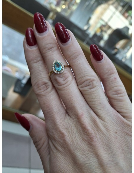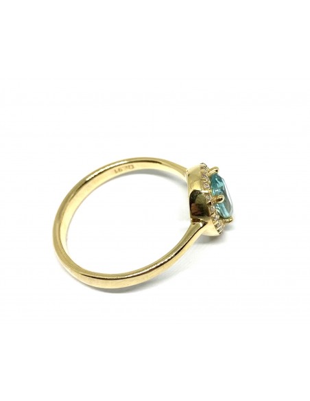 Κοσμήματα ΒαρουχάκηΖεστός κίτρινος χρυσός που δημιουργεί μια εντυπωσιακή αντίθεση με τη τυρκουάζ κεντρική πέτρα. Εξαιρετική επεξεργασία, με προσοχή στις λεπτομέρειες για κομψότητα και ανθεκτικότητα. Διακοσμημένο με μικρά λαμπερά ζιργκόν, που προσδίδουν επιπλέον λάμψη στο κόσμημα.