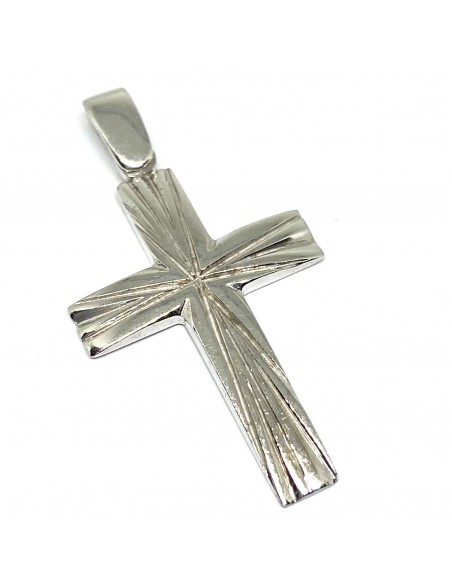 Σταυρός Ανδρικός Λευκόχρυσος Κ14 με Χαραγμένο Σχέδιο