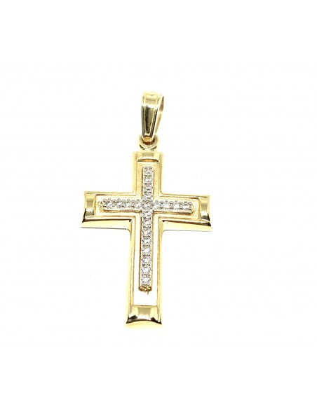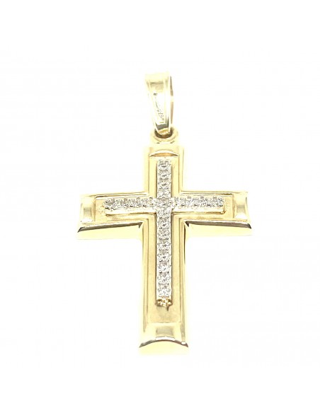 Σταυρός Χρυσός Κ14 με Ζιργκόν και Γυαλιστερό Φινίρισμα