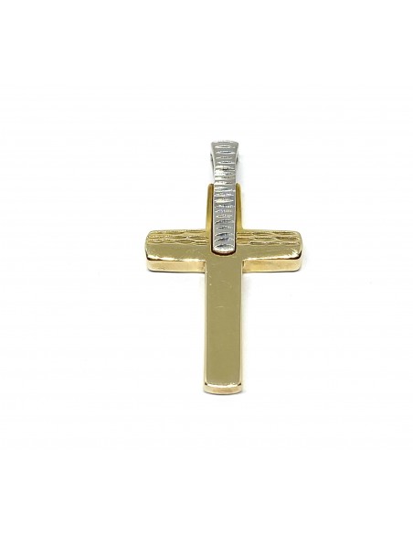 Ένας κομψός σταυρός από χρυσό 14Κ σε εντυπωσιακή διχρωμία: κίτρινο και λευκό χρυσό.