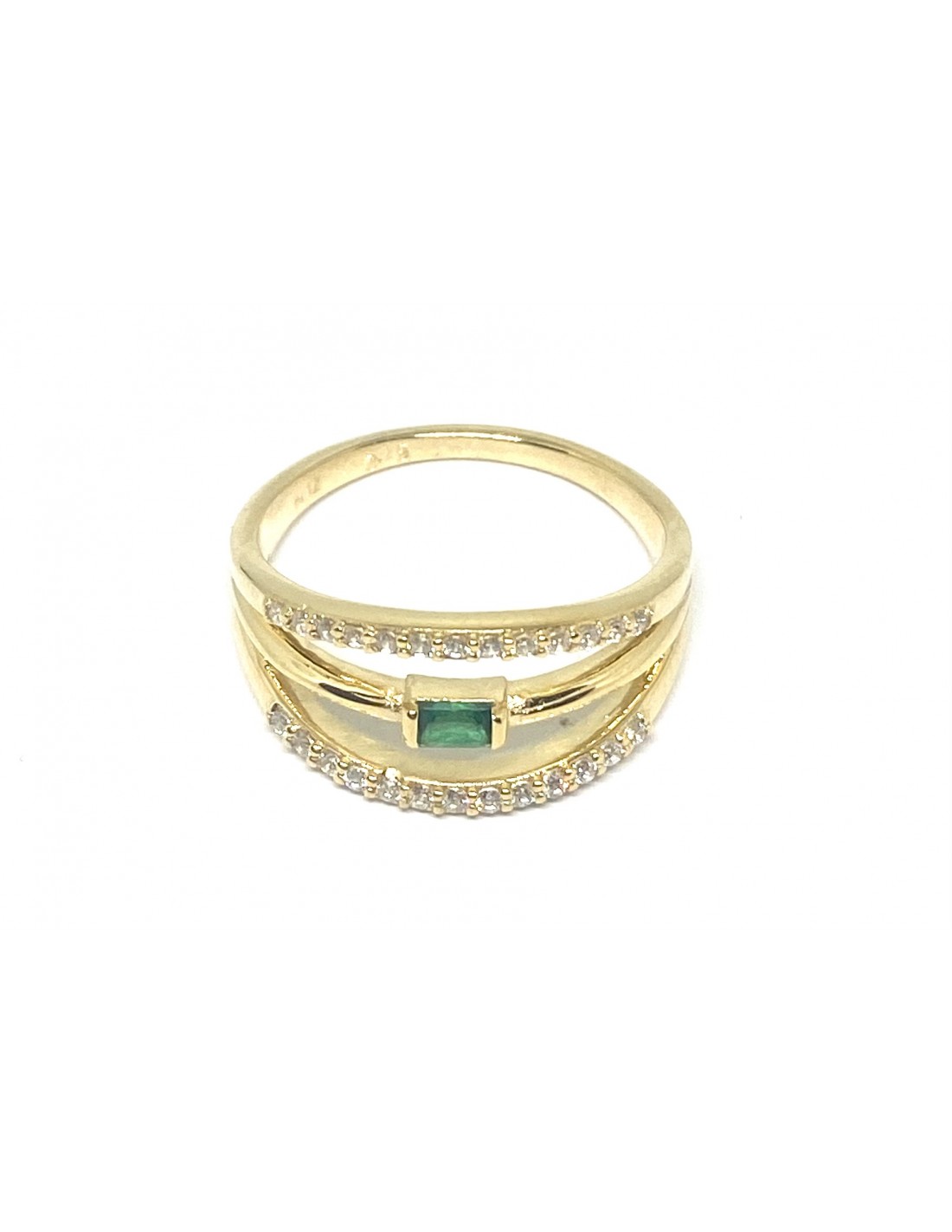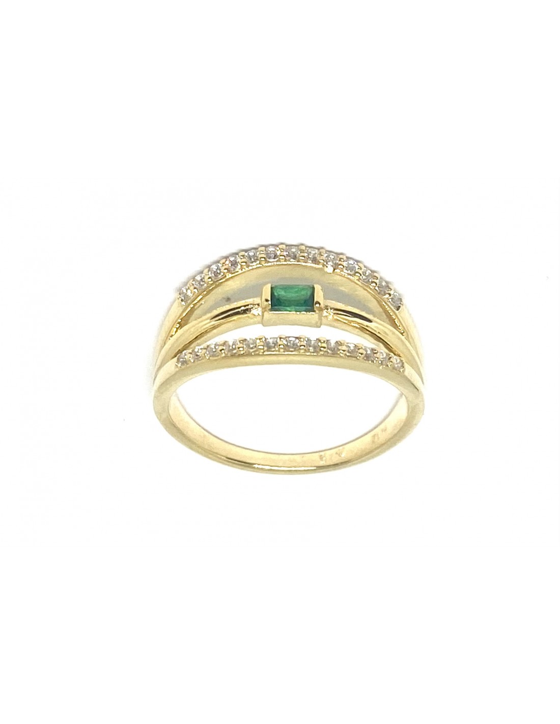 Δαχτυλίδι Κ9 Χρυσό με Συνθετικό Σμαράγδι & Ζιργκόν / Διαχρονική Κομψότητα