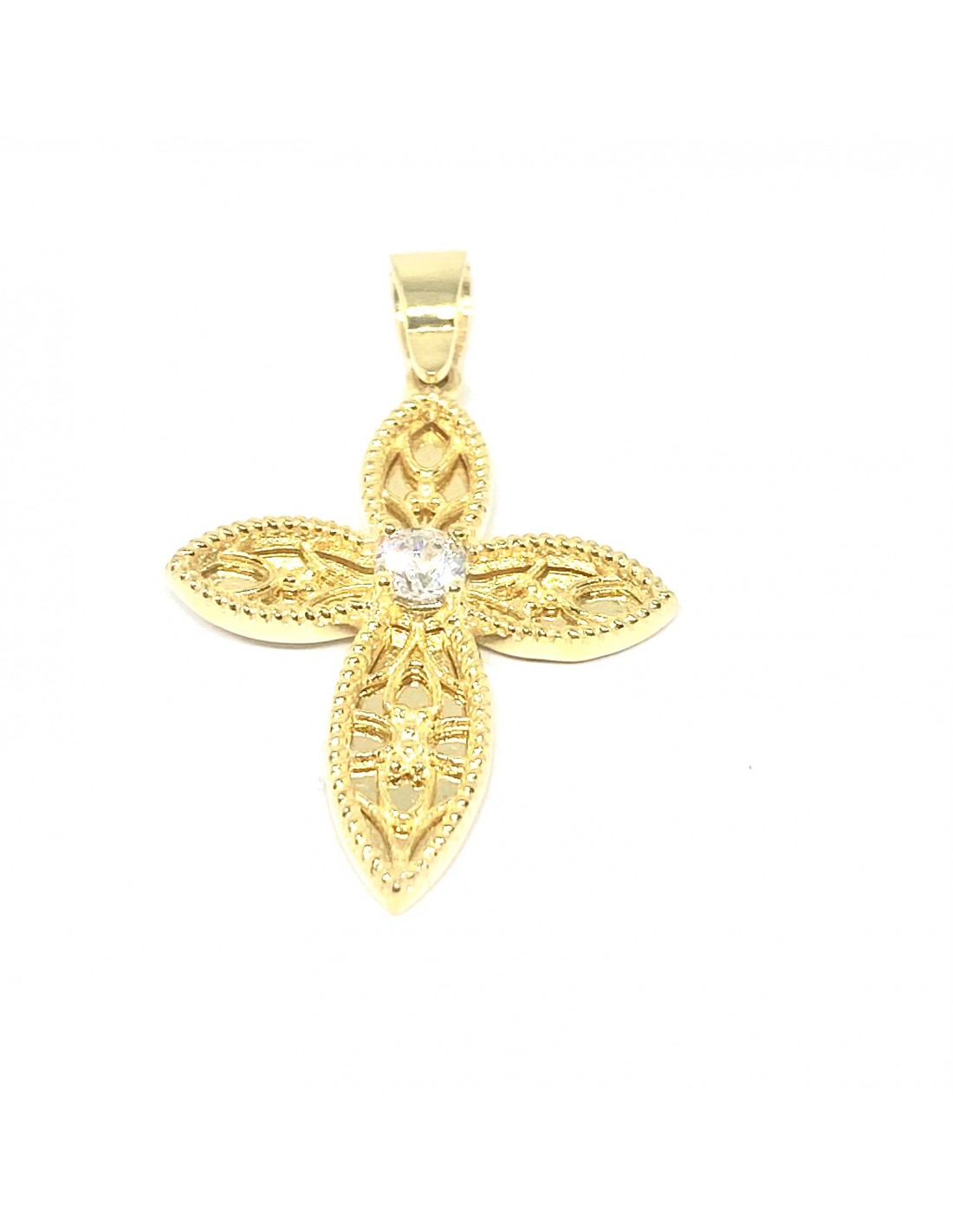 Σταυρός Χρυσός 14Κ με Διάφανο Ζιργκόν Βυζαντινού Στυλ