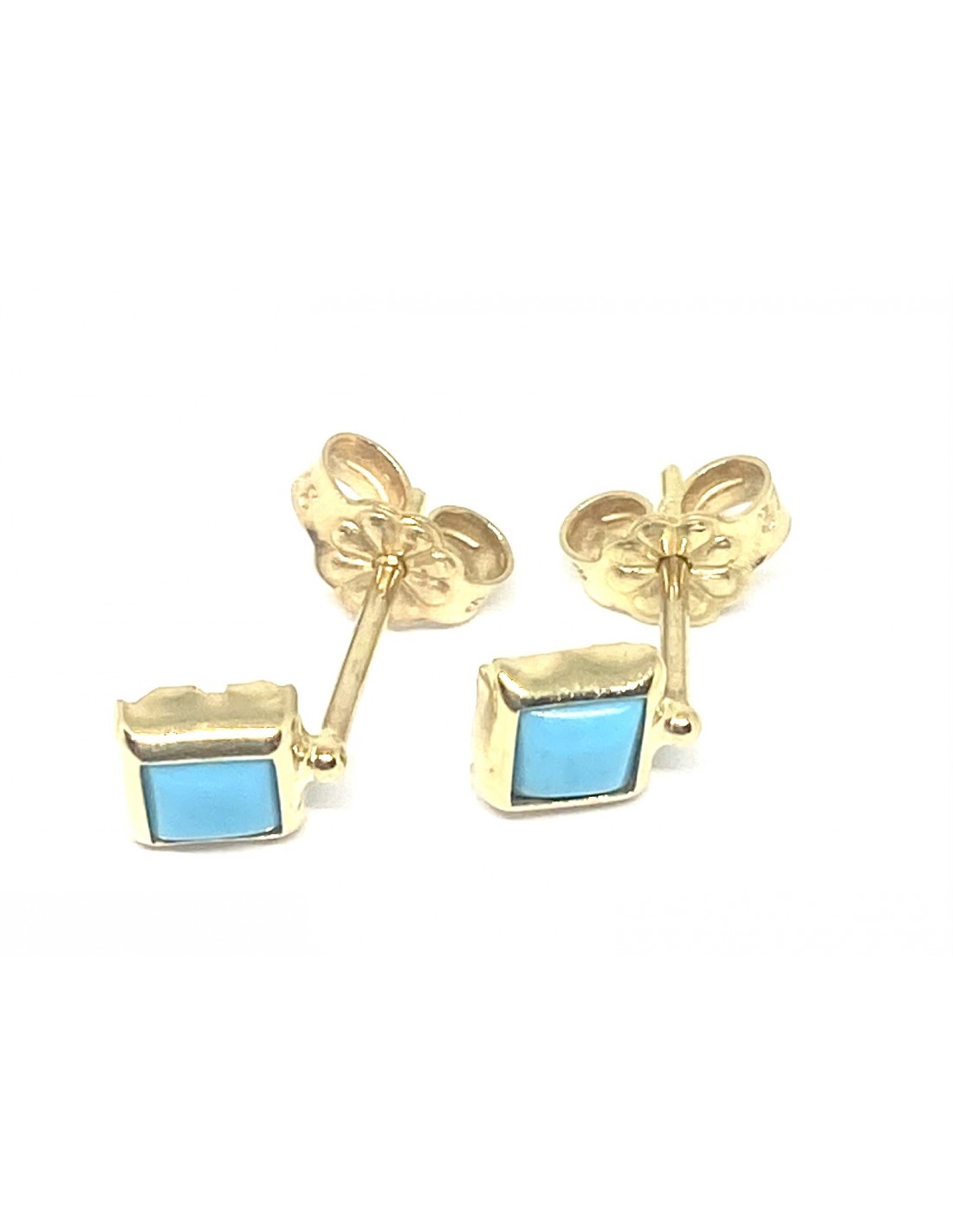 Κομψά και διακριτικά, αυτά τα σκουλαρίκια καρφωτά από χρυσό 9 καρατίων διαθέτουν τετράγωνες πέτρες σε εντυπωσιακό τιρκουάζ χρώμα. Η minimal σχεδίαση τα καθιστά ιδανικά για καθημερινή χρήση αλλά και για ιδιαίτερες περιστάσεις, προσφέροντας χρώμα και λάμψη με μια μοντέρνα πινελιά.