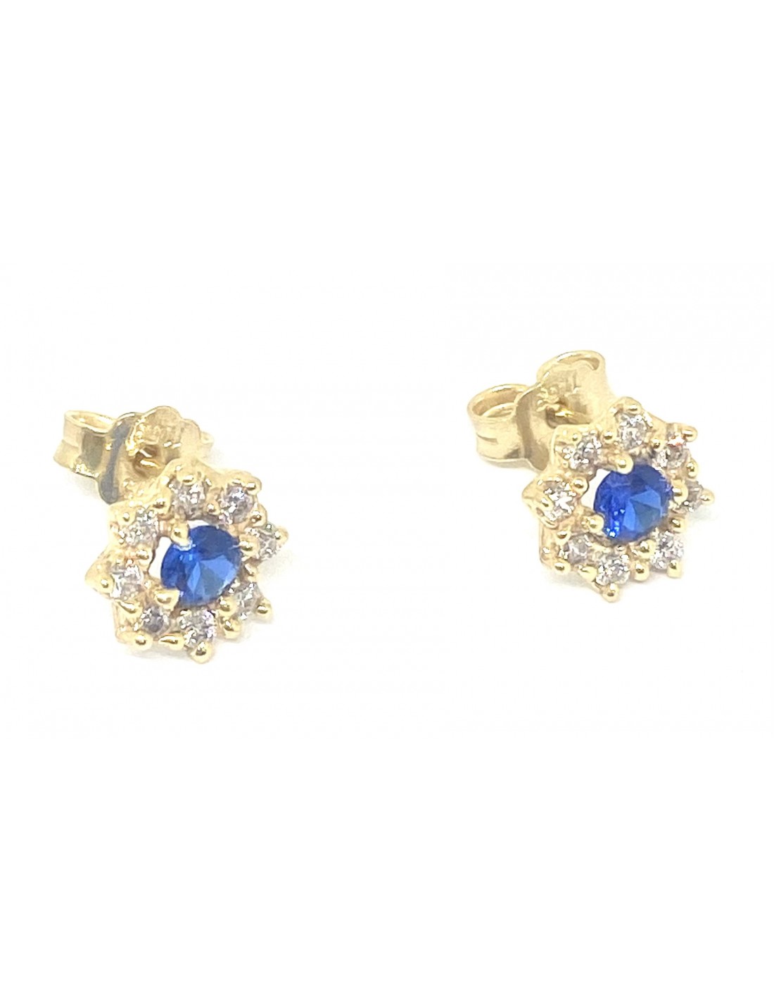 Χρυσά Σκουλαρίκια Καρφωτά με Μπλε Ζιρκόν και Λευκές Πέτρες