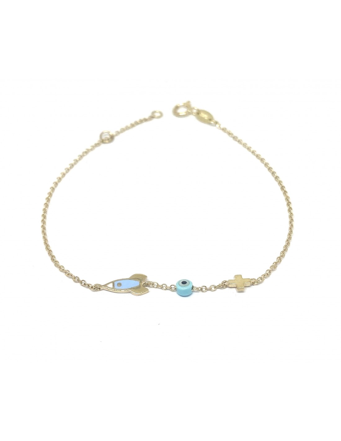 Βραχιόλι Χρυσό με Ψαράκι, Μάτι και Σταυρό Κ9