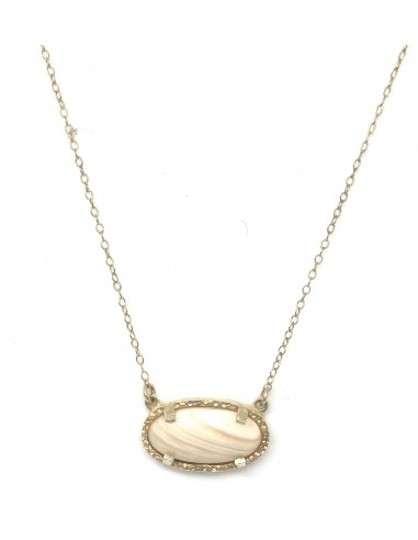 Λεπτεπίλεπτο κολιέ με αλυσίδα και οβάλ φυσική πέτρα σε γήινη απόχρωση, πλαισιωμένη από διακριτικό πλαίσιο.
