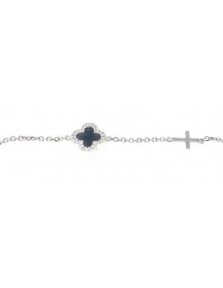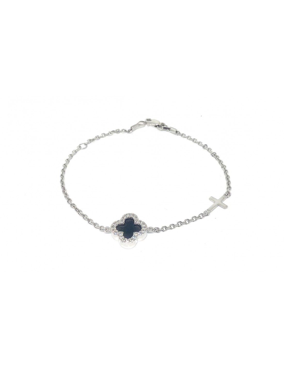 Κοσμήματα ΒαρουχάκηΜοντέρνο και εκλεπτυσμένο βραχιόλι από λευκόχρυσο 14 καρατίων, με κεντρικό μοτίφ τετράφυλλο με μαύρο σμάλτο τύπου Van Cleef.