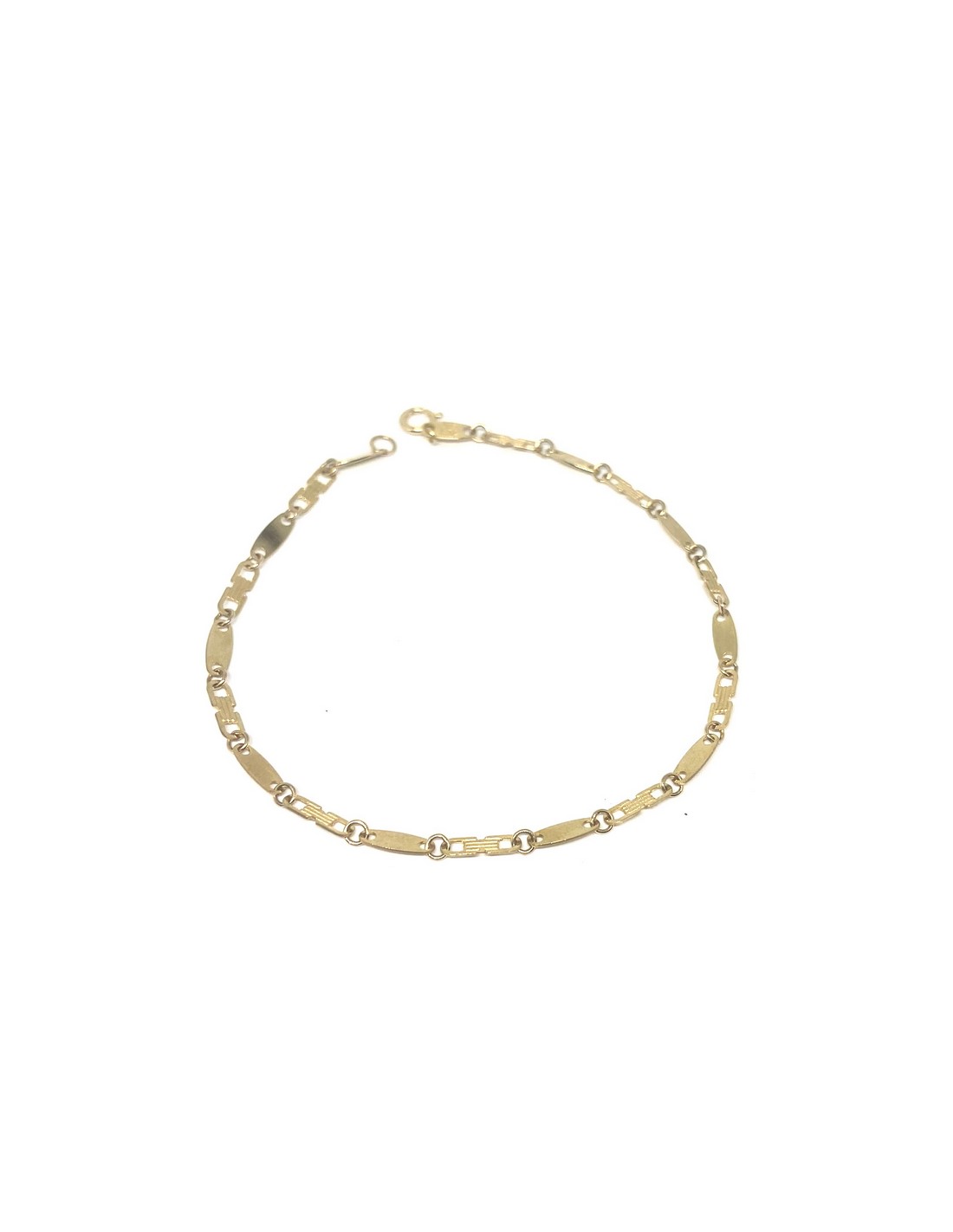 Κλασικό και εκλεπτυσμένο βραχιόλι από χρυσό 9 καρατίων, με οβάλ πλάκες που συνδέονται με μικρούς κρίκους και διακριτικά χαραγμένες λεπτομέρειες.
