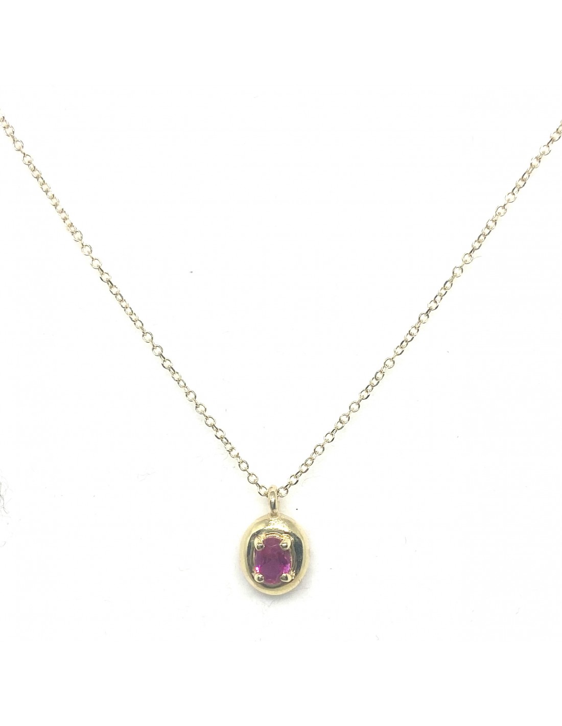 Μίνιμαλ κολιέ από χρυσό 9 καρατίων, με μενταγιόν που φιλοξενεί ένα λαμπερό οβάλ ζιργκόν  στο κέντρο.