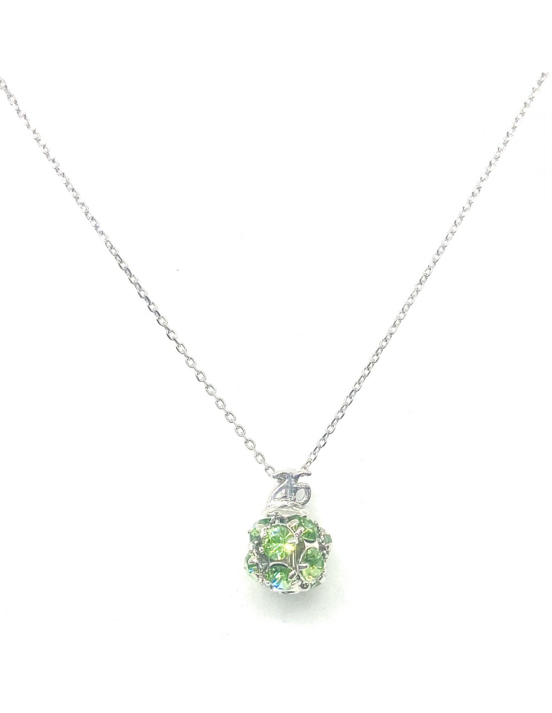 Κοσμήματα ΒαρουχάκηΈνα εντυπωσιακό και φωτεινό κολιέ ασημί τόνου, με στρογγυλό μενταγιόν στολισμένο με λαμπερές πράσινες πέτρες σε κοπή brilliant. Η τρισδιάστατη, «μοναδική» κατασκευή του θυμίζει λουλούδι ή μικρή σφαίρα φωτός, προσφέροντας ιδιαίτερη παιχνιδιάρικη λάμψη και πολυτέλεια στο look.
