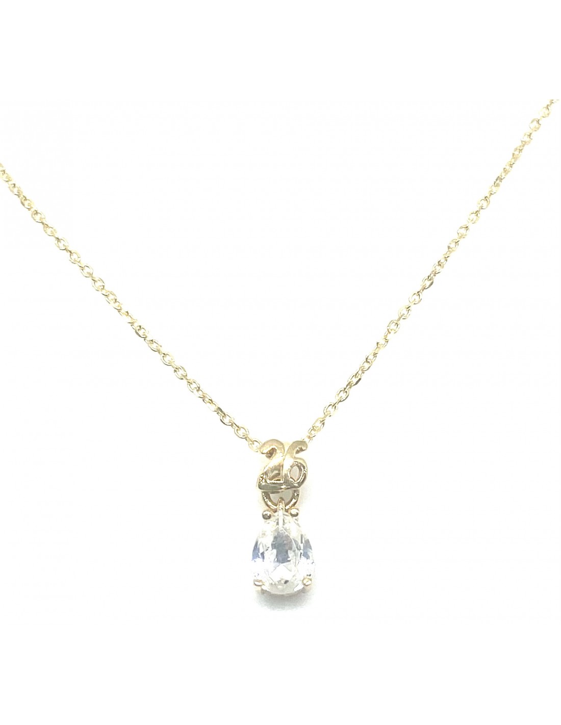 Κοσμήματα ΒαρουχάκηΑναδείξτε την κομψότητα και τη λάμψη σας με αυτό το φίνο κολιέ, διακοσμημένο με ένα εντυπωσιακό λευκό ζιργκόν σε κοπή “δακρύ”.