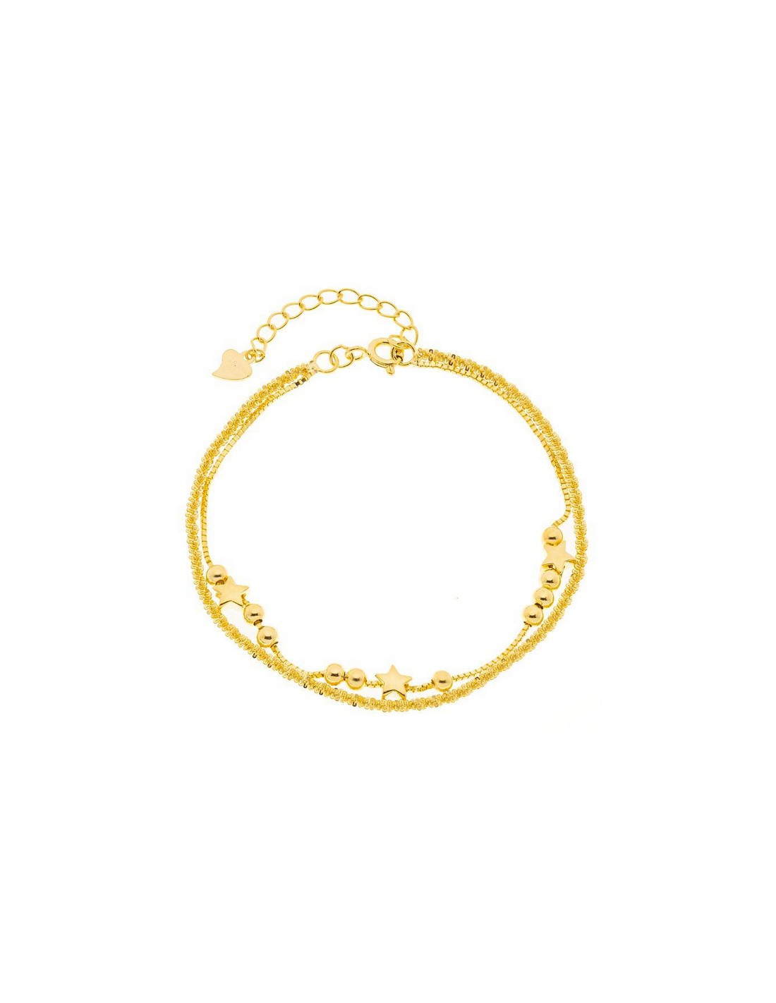 Αναδείξτε το προσωπικό σας στιλ με αυτό το κομψό και παιχνιδιάρικο ασημένιο βραχιόλι, κατασκευασμένο από ασήμι 925. Η διπλή του αλυσίδα προσθέτει όγκο και λάμψη, ενώ ο συνδυασμός από μικρά σφαιρικά στοιχεία και μοντέρνα αστεράκια δημιουργεί μία διακριτική αλλά εντυπωσιακή σύνθεση που ταιριάζει σε κάθε ηλικία και στιλ.