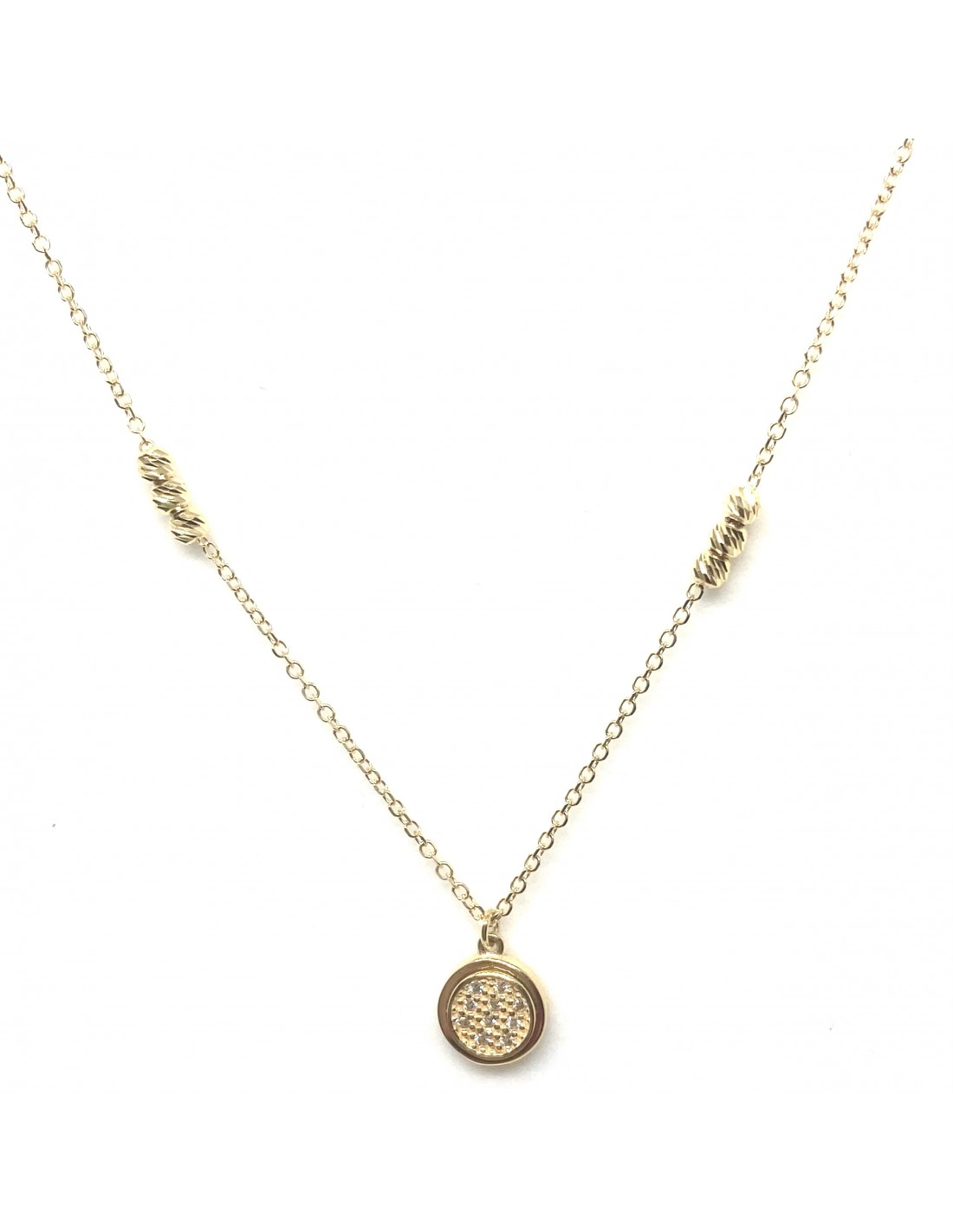 Χρυσό Κολιέ με Στρογγυλό Pavé Μοτίφ και Διακοσμητικές Χάντρες 9Κ