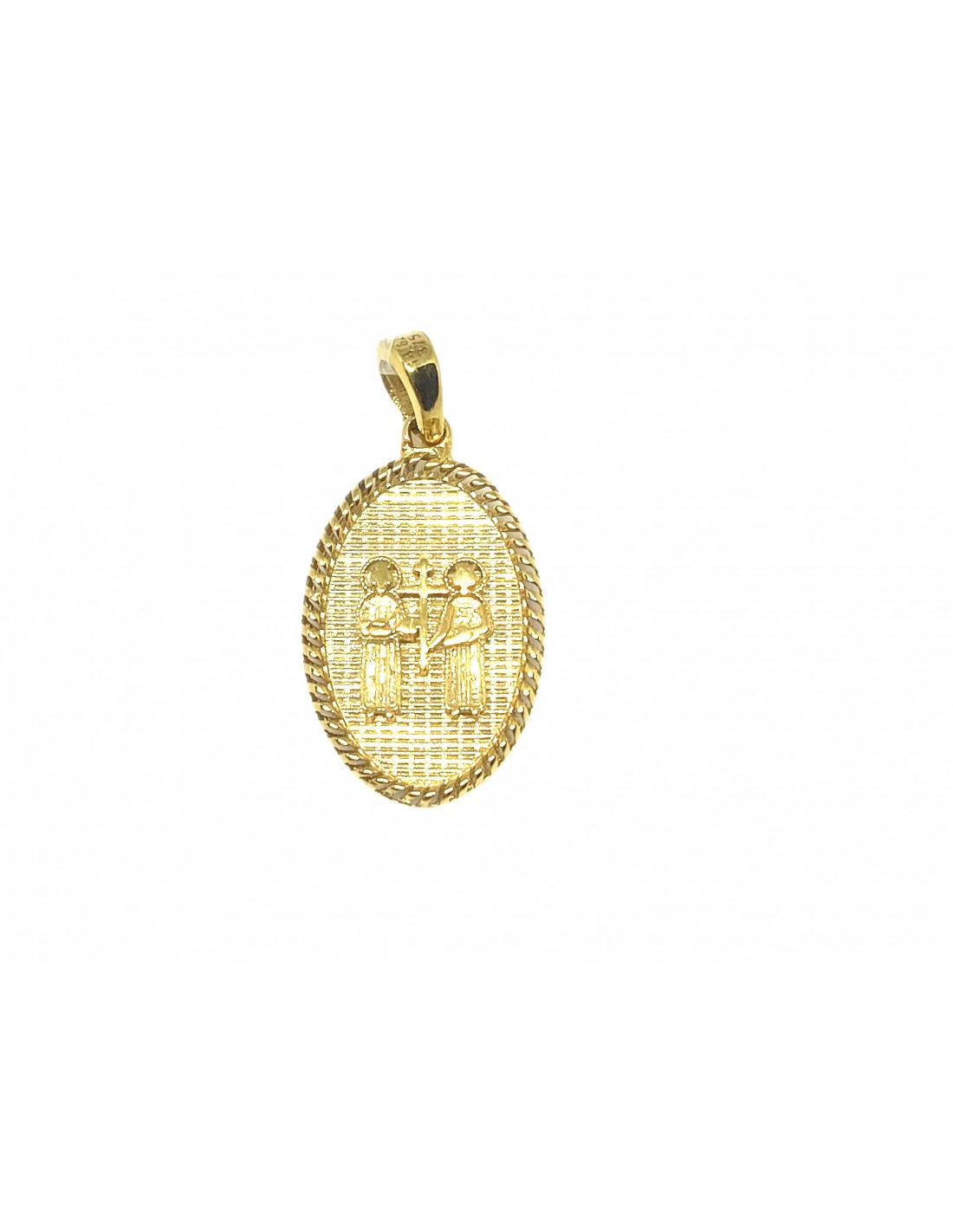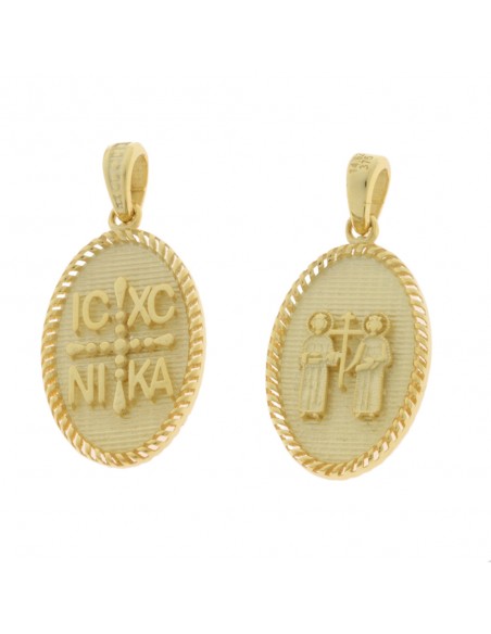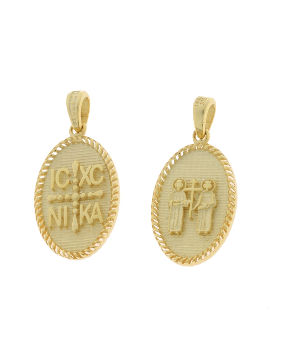 Κοσμήματα ΒαρουχάκηΚομψό χρυσό κωνσταντινάτο σε οβάλ σχήμα, δύο όψεων, εμπνευσμένο από την παράδοση των θρησκευτικών φυλαχτών. Κατασκευασμένο από κίτρινο χρυσό, διαθέτει ανάγλυφη παράσταση με λεπτομέρεια, που αποπνέει πνευματικότητα και διαχρονική αξία.