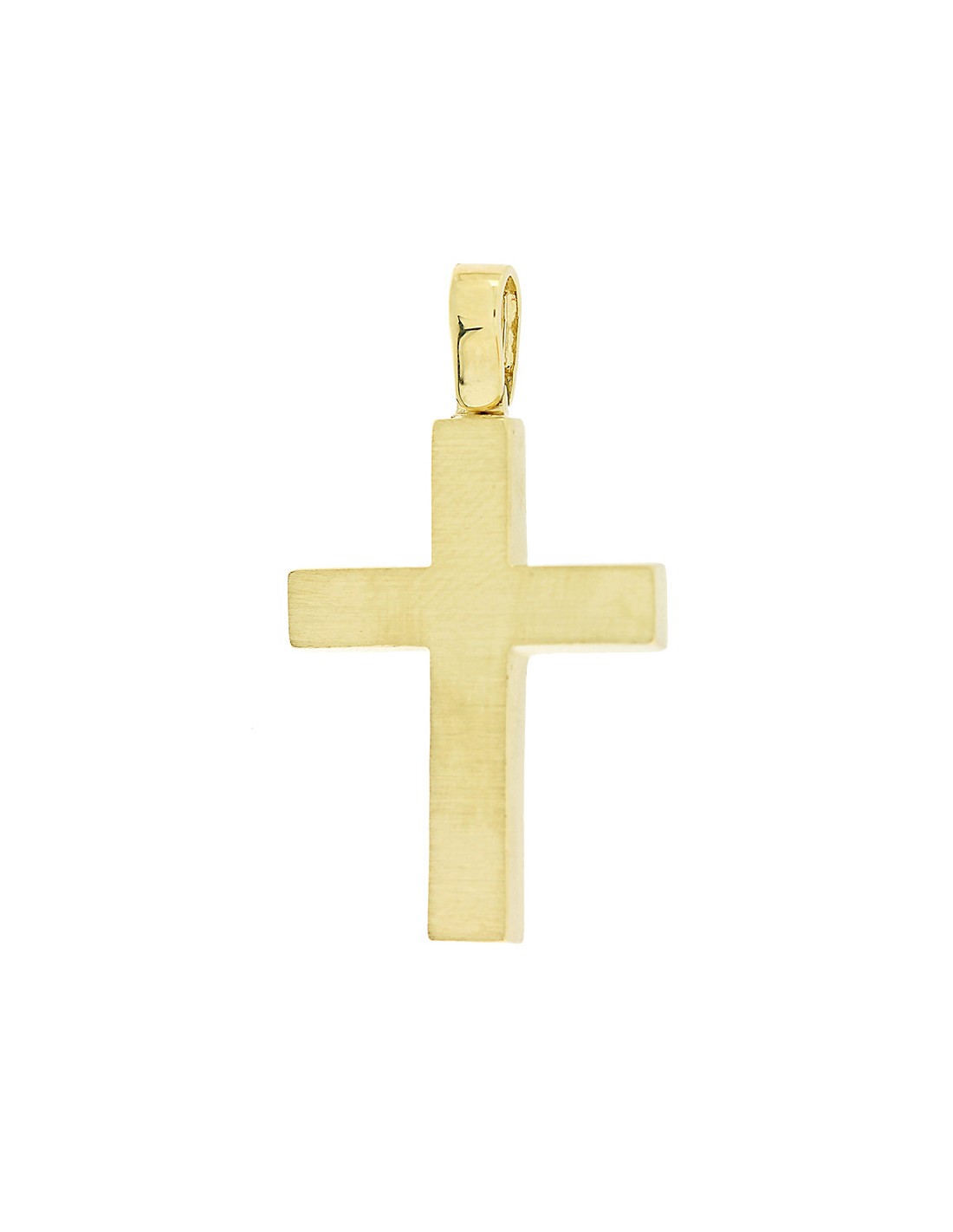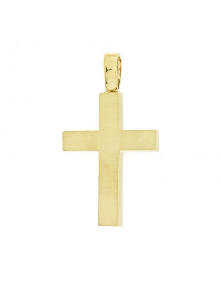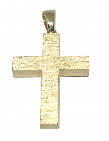 Κοσμήματα ΒαρουχάκηΑπλός και κομψός σταυρός από χρυσό 14 καρατίων, με ματ φινίρισμα που προσδίδει μοντέρνα αισθητική και διακριτική πολυτέλεια.