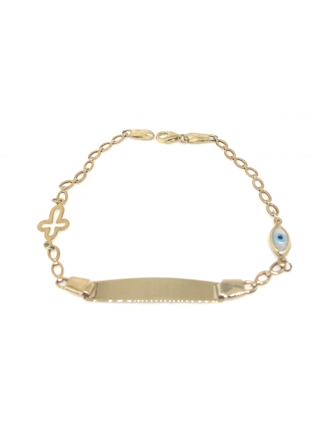 Χρυσό βραχιόλι ταυτότητας με ματάκι και σταυρό Κ9