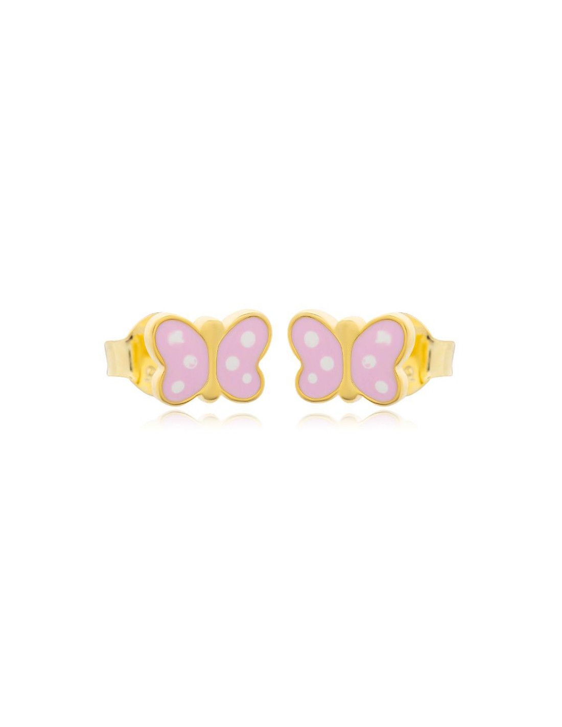 Χαριτωμένα παιδικά σκουλαρίκια σε σχέδιο πεταλούδας, διακοσμημένα με απαλό ροζ σμάλτο και λευκές λεπτομέρειες που προσθέτουν μία παιχνιδιάρικη και γλυκιά πινελιά. Ένα φωτεινό και ευχάριστο κόσμημα που δίνει χρώμα και ζωντάνια σε κάθε παιδική εμφάνιση.