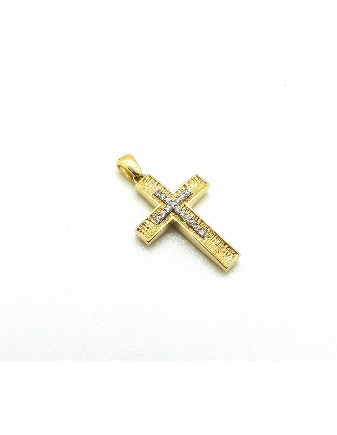 Σταυρός διπλής όψης με πέτρες ζιργκόν σε 14 κάρατια χρυσό