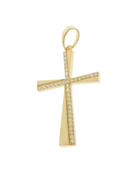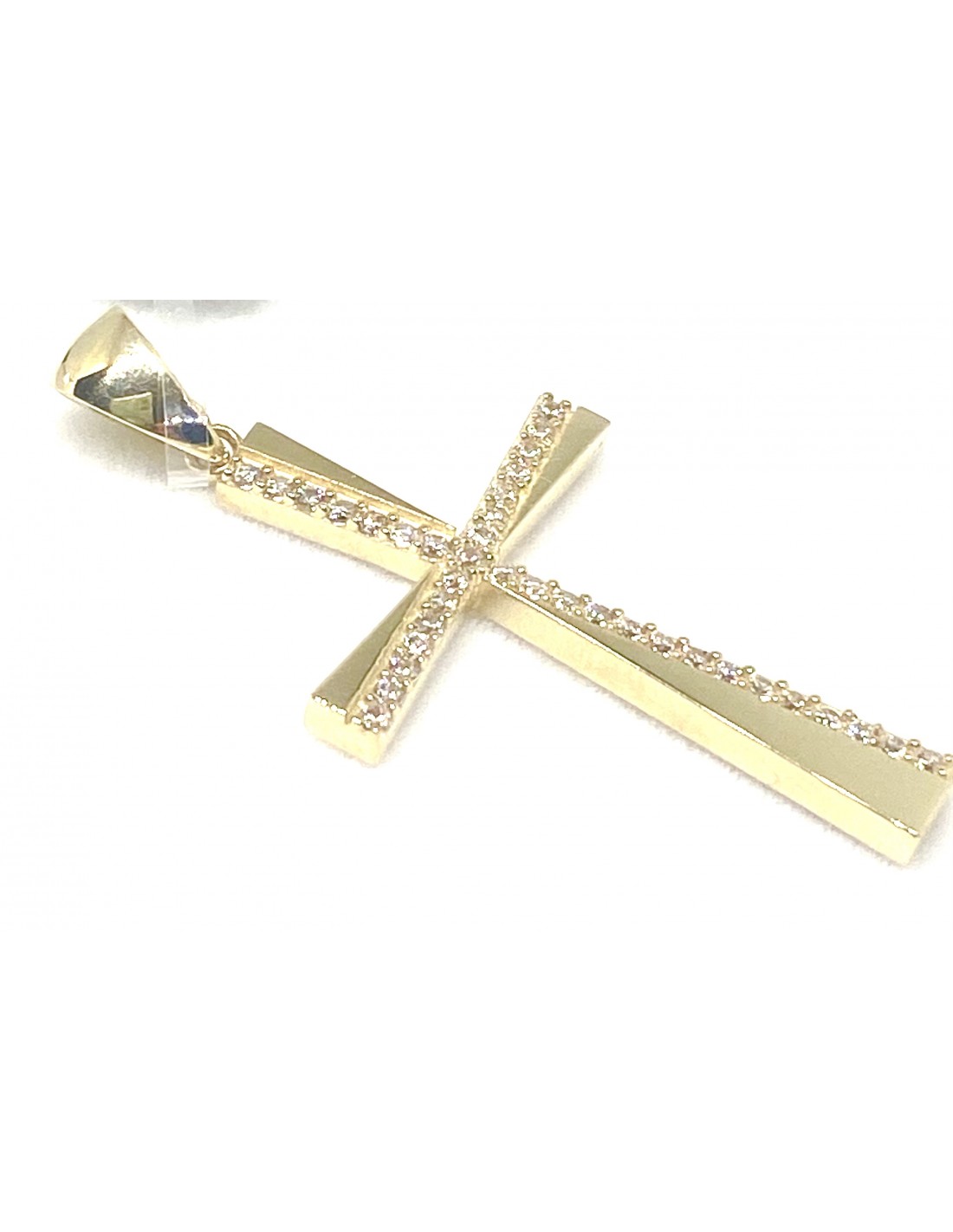 Κοσμήματα ΒαρουχάκηΕντυπωσιακός λεπτεπίλεπτος σταυρός από χρυσό 14 καρατίων 585, διακοσμημένος με λαμπερές ζιργκόν πέτρες που χαρίζουν διακριτική πολυτέλεια και λάμψη.