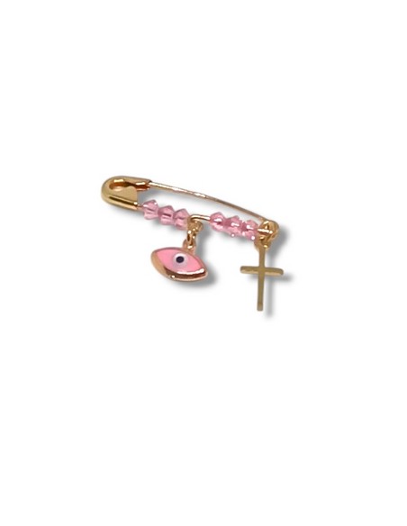 Κοσμήματα ΒαρουχάκηΠαιχνιδιάρικη παραμάνα με υπέροχα σχέδια, μάτι , ρόζ πέτρες και σταυρό για το νεογέννητο .