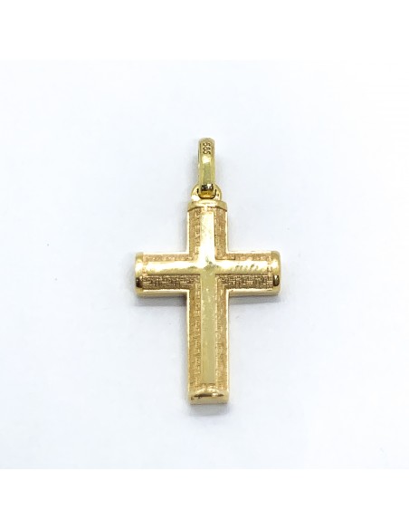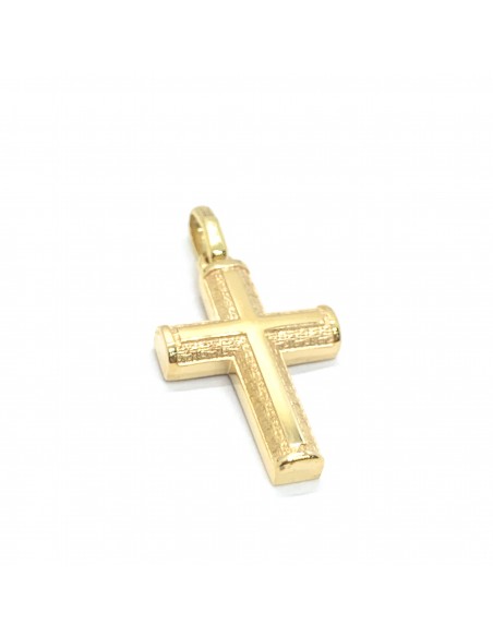 Σταυρός με λουστρέ φινίρισμα και σφυρήλατες λεπτομέρειες στο γύρω γύρω ιδανικός για βάφτιση αγοριού αλλά και για καθημερινός σταυρός για άντρα . Κατασκευασμένος από κίτρινο χρυσό 14 Καρατίων .