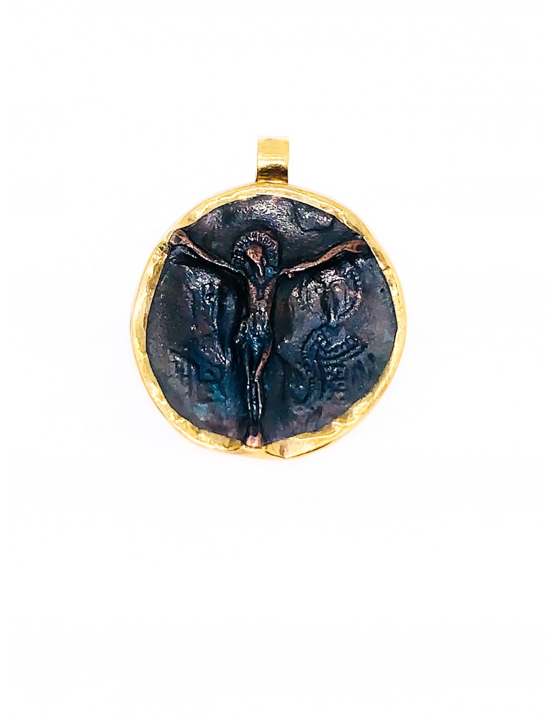 Κοσμήματα ΒαρουχάκηΙδαίτερο μαύρο κωνσταντινάτο με φιγούρα τον εσταυρωμένο διπλής όψης. Περιλαμβάνει λουστρέ φινίρισμα περιμετρικά του μενταγιόν.