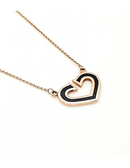 Κοσμήματα ΒαρουχάκηΚολιέ κατασκευασμένο από ροζ χρυσό 14 καρατίων. Διαθέτει σχέδιο καρδιά διακοσμημένο με μαύρο σμάλτο.