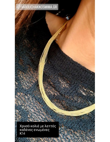 Εντυπωσιακό κολιέ από πολλές ενωμένες καδένες, κατασκευασμένο σε 14 καράτια χρυσό.