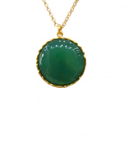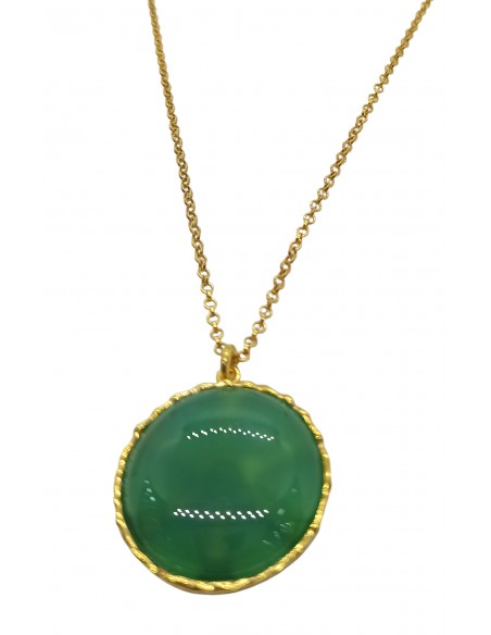 Κοσμήματα ΒαρουχάκηΕντυπωσιάκο κολιέ με ορυκτή πέτρα αχάτη όπου πιστεύεται ότι ο πράσινος αχάτης συνδέεται συχνά με την ισορροπία και την αρμονία.