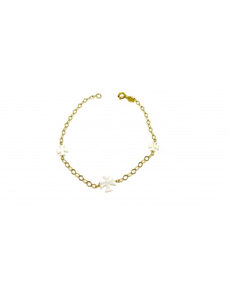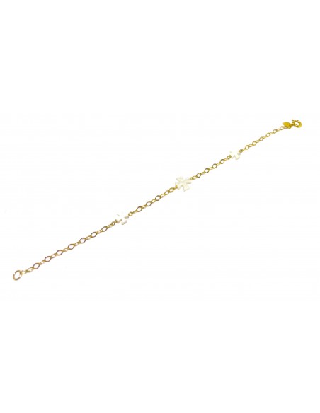 Κοσμήματα ΒαρουχάκηΧρυσό βραχιόλι Κ9 με κομψή αλυσίδα και διακοσμητικά στοιχεία σε σχήμα σταυρού από φίλντισι.
