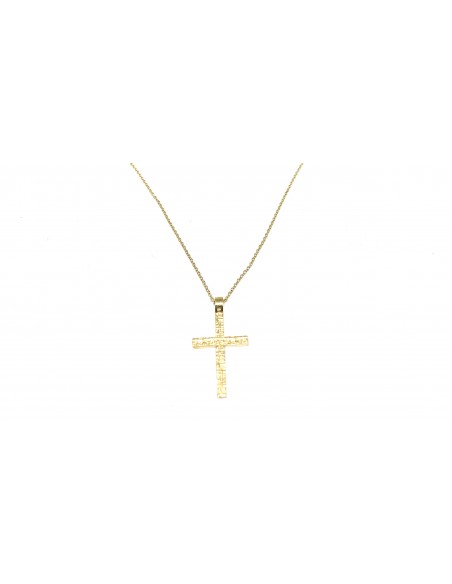 Χρυσός Σταυρός Κ14 με Χειροποίητο Σφυρήλατο Φινίρισμα και καδένα
