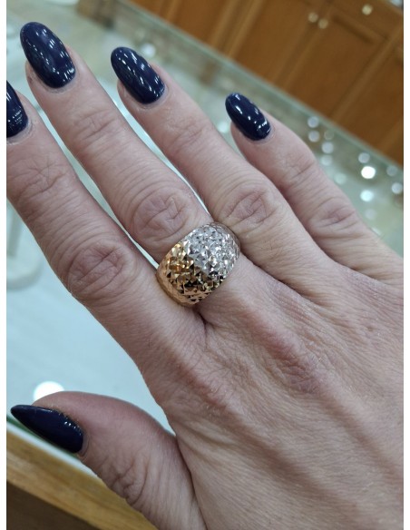 Δίχρωμο Χρυσό Δαχτυλίδι 14Κ με Σφυρήλατο Φινίρισμα