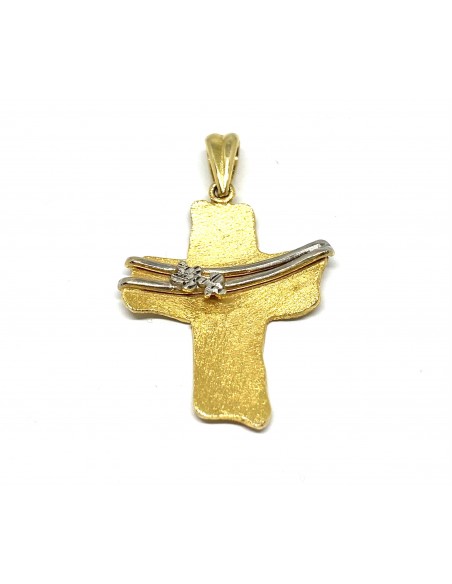 Κοσμήματα ΒαρουχάκηΈνας ιδιαίτερος, καλλιτεχνικός σταυρός από χρυσό 14 καρατίων σε ματ φινίρισμα, με ανάγλυφο σχέδιο και λευκόχρυσες διακοσμητικές γραμμές και λουλουδάκια στο κέντρο. Η ελεύθερη γραμμή του δίνει μια πιο σύγχρονη, καλλιτεχνική αισθητική.