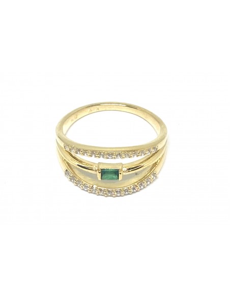 Δαχτυλίδι Κ9 Χρυσό με Συνθετικό Σμαράγδι & Ζιργκόν / Διαχρονική Κομψότητα