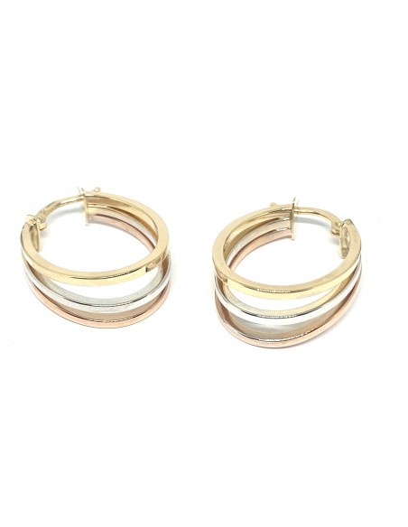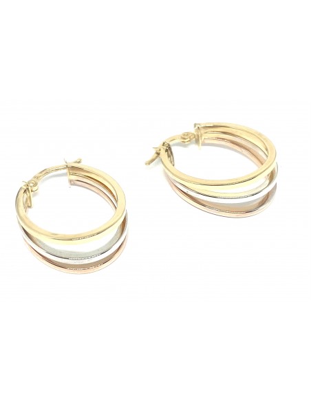 Σκουλαρίκια Κρίκοι Τρίχρωμοι από Χρυσό 14Κ