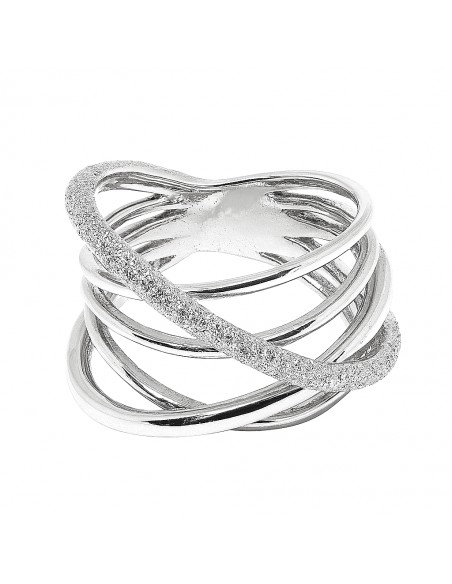 Δαχτυλίδι από ασήμι 925 με μοντέρνο, περίτεχνο σχέδιο πολλαπλών κυκλικών γραμμών που διασταυρώνονται αρμονικά.