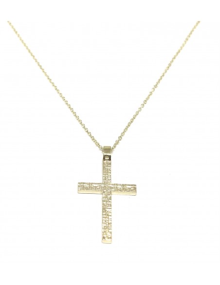 Σταυρός από Χρυσό Κ9 με Ματ Σφυρήλατη Υφή